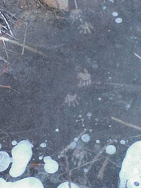 These shots of very clear raccoon tracks were found beaver pond ice after they had investigated the lodge and picked up some mud.